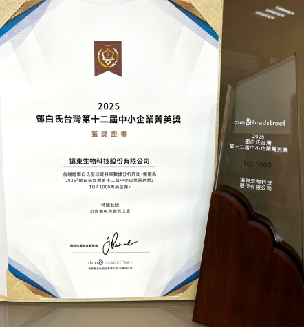 遠東生技(6886)從超過170萬家中小企業中脫穎而出,榮獲第12屆「鄧白氏中小企業菁英獎」。